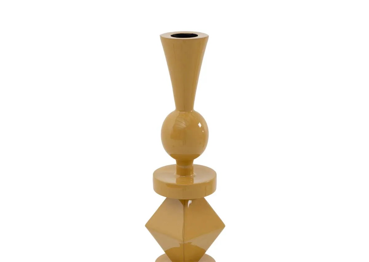 A glossy bright and sunny mustard yellow candle stand, ideal as an ornament or a functional candle holder.