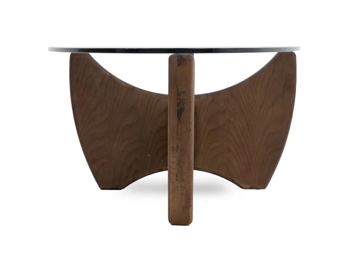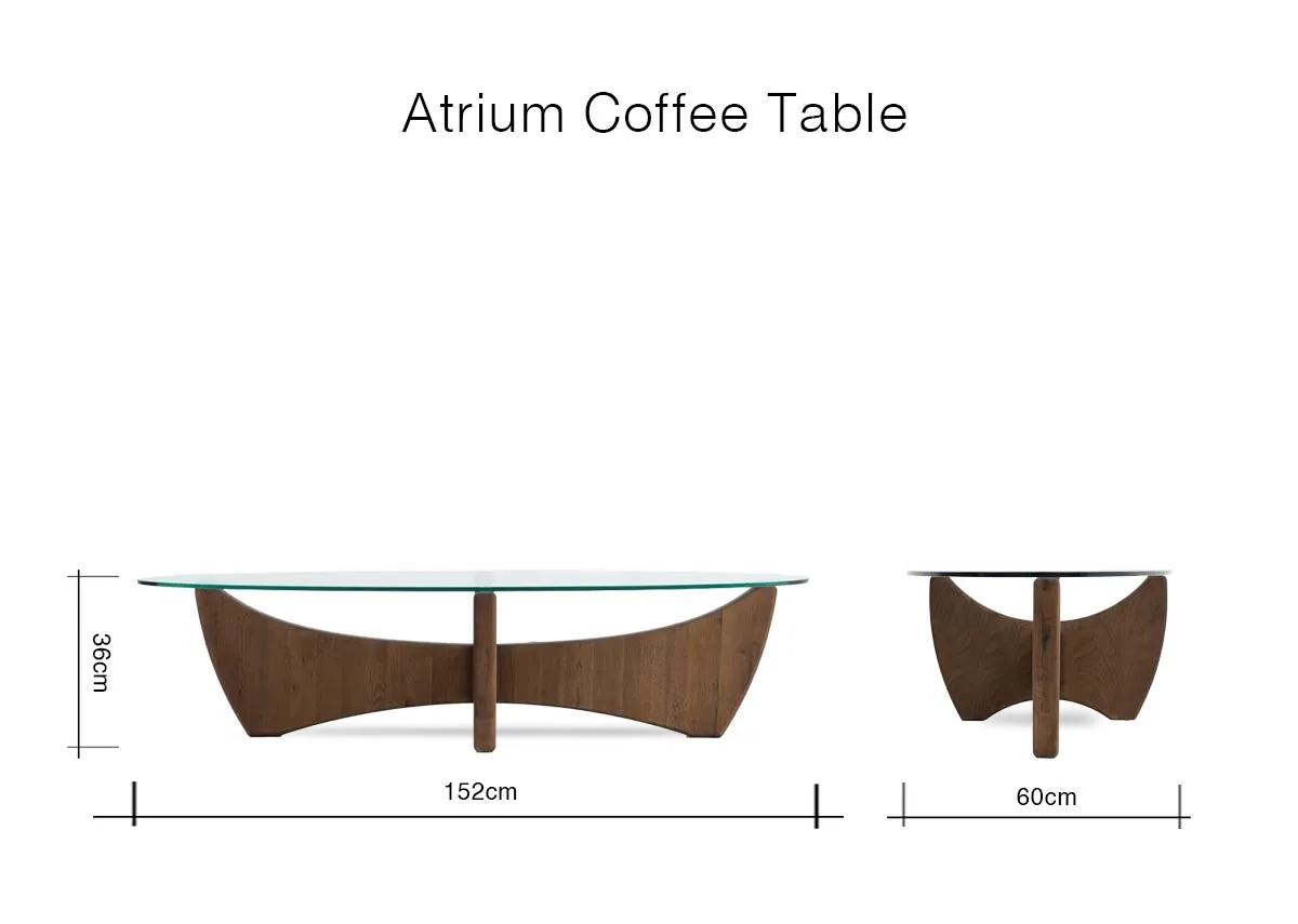 A smoked oak butterfly shaped base dressed with an oval glass top, the Atrium coffee table is a fabulous retro piece.