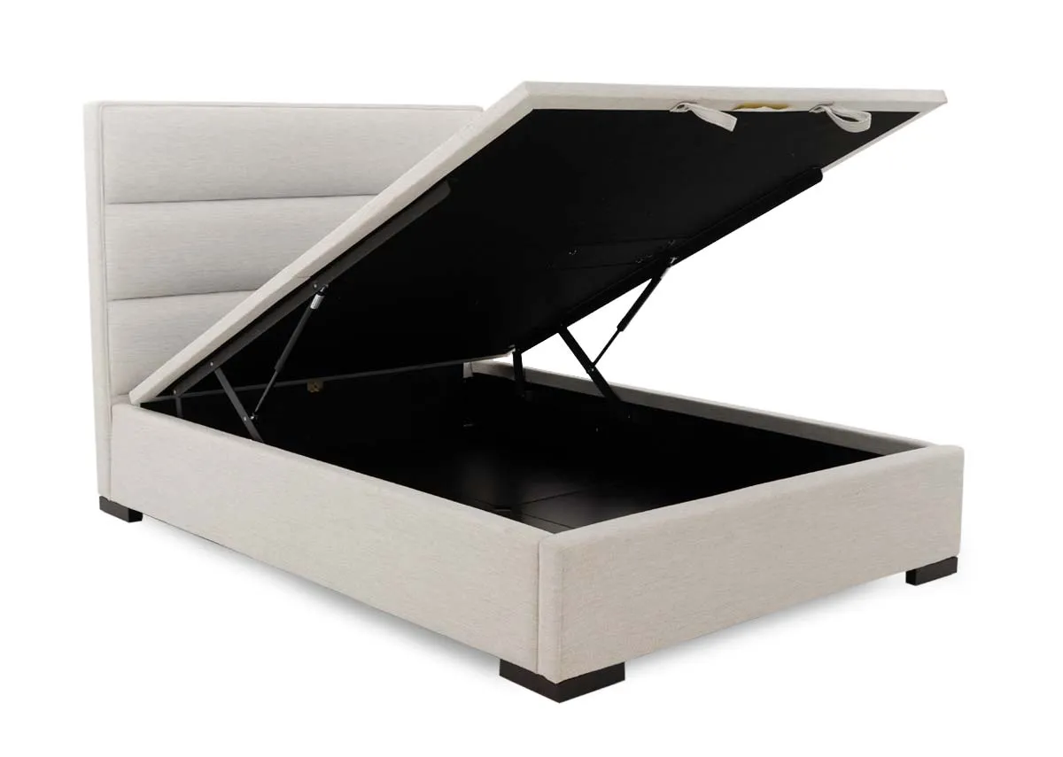 When space is at a premium in the bedroom, the super king beige Ebony fabric ottoman bed will fulfil your storage needs with its concealed lift-top underneath storage area.