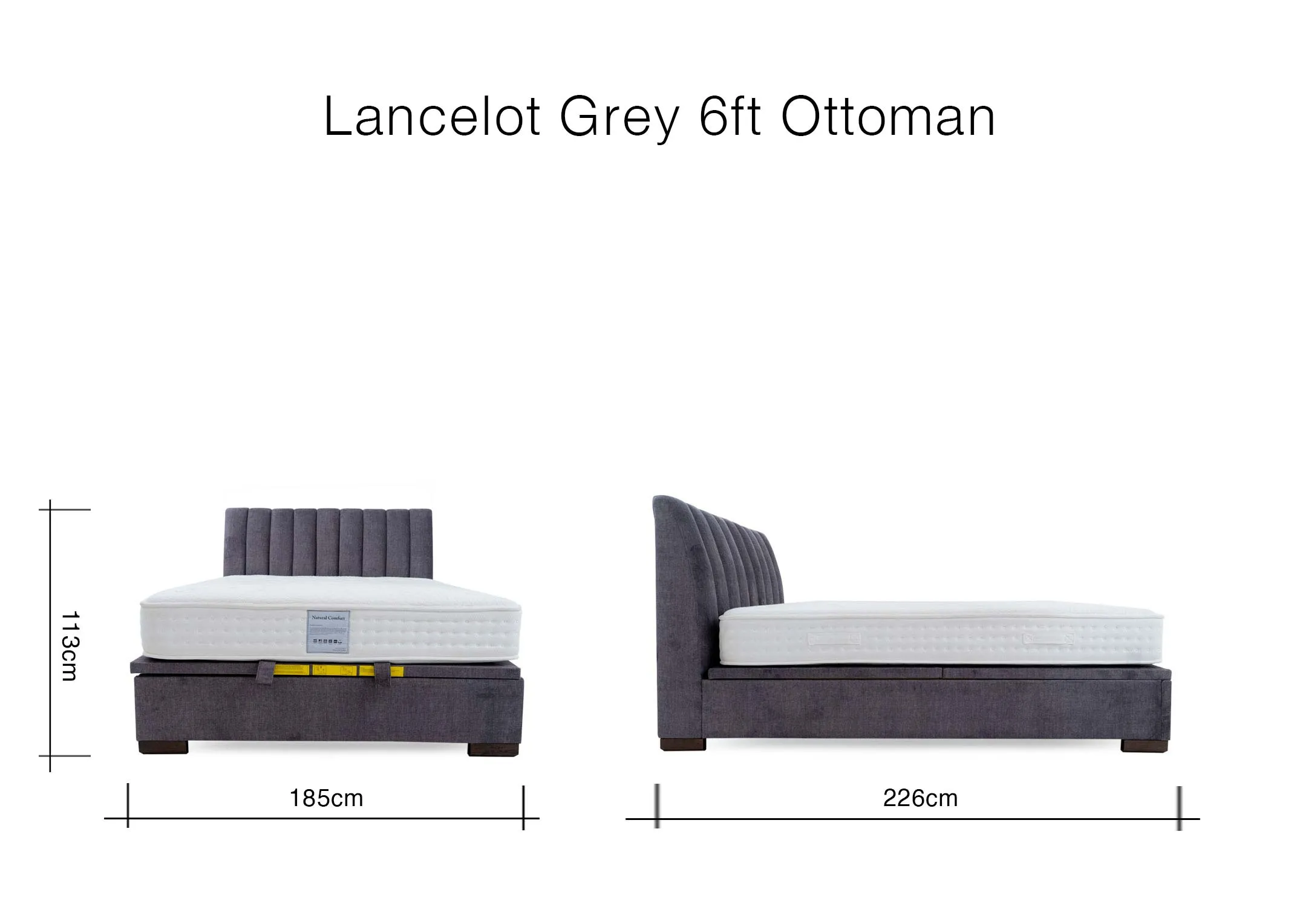 Super King (6ft) Grey Fabric Ottoman Bed - Lancelot