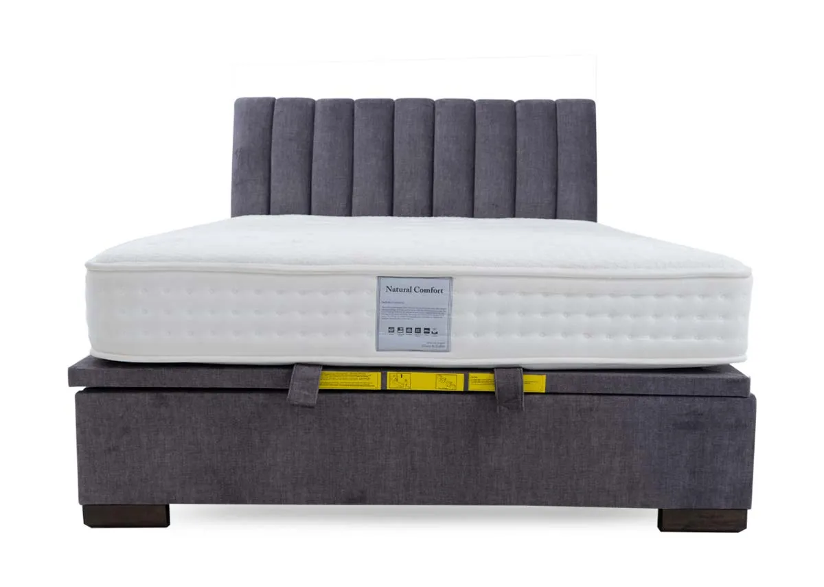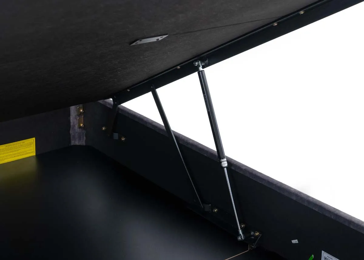 Boasting charm the Lancelot 6ft ottoman boasts a charcoal grey fabric & a padded tufted headboard, with a lever at the foot revealing ample base storage.