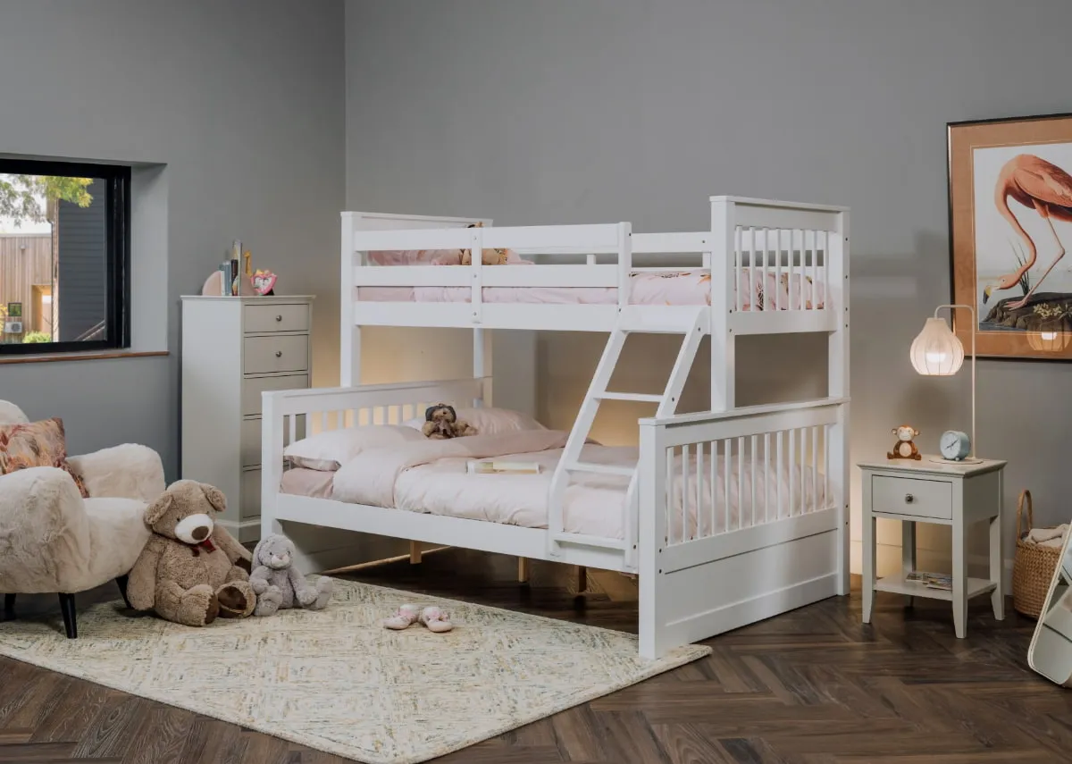 Twin (3ft) & (4ft6) White Bunk Bed - Lara