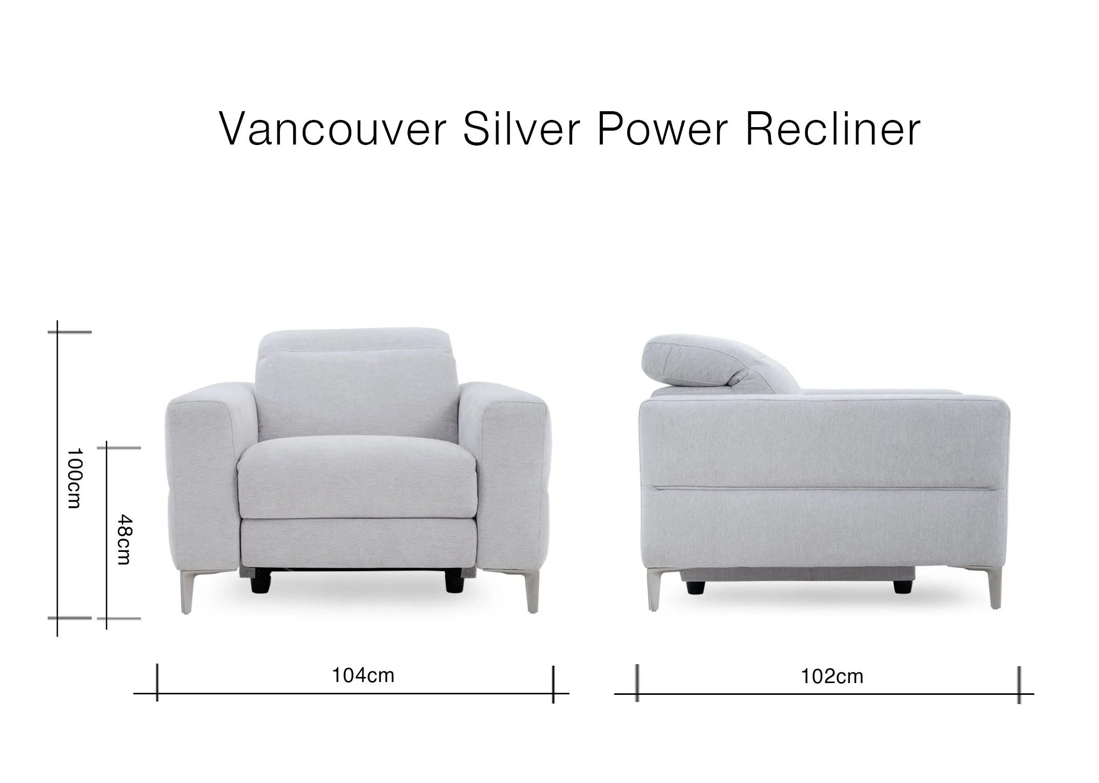Vancouver Silver Fabric Power Recliner (Carlow Floor Model)