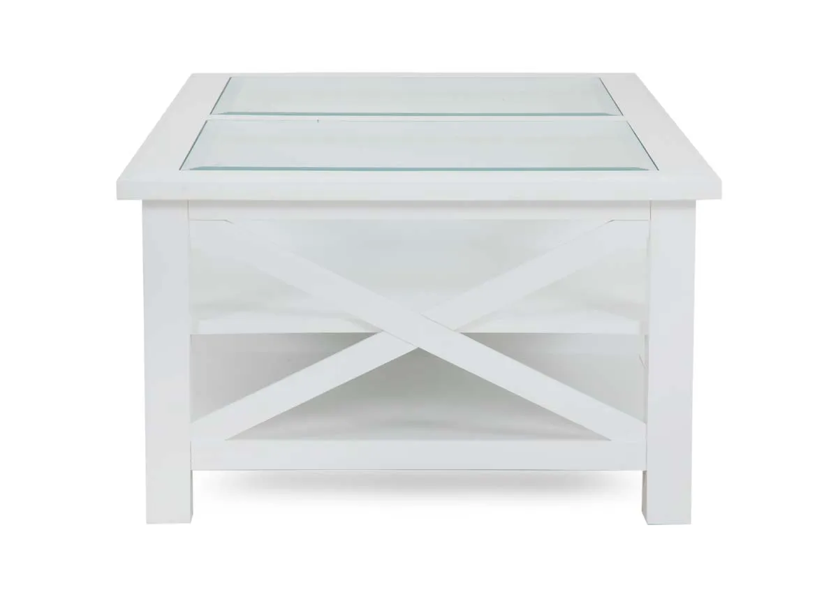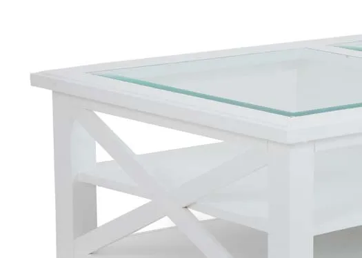 White Coffee Table with Glass Top - Hampton