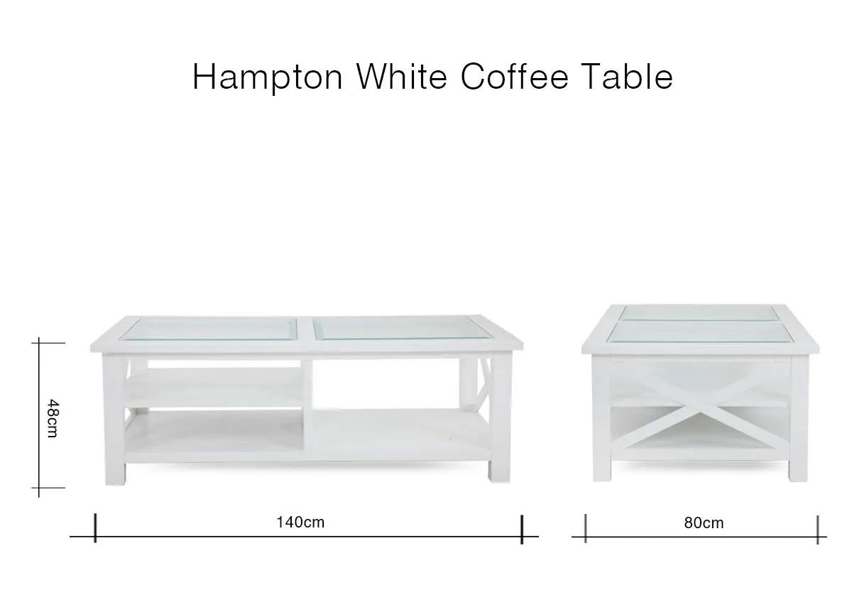The Hampton white coffee table is made from a strong & durable pine & MDF and a clear glass top to protect the surface which is easy to clean up any spills, with ample storage underneath.