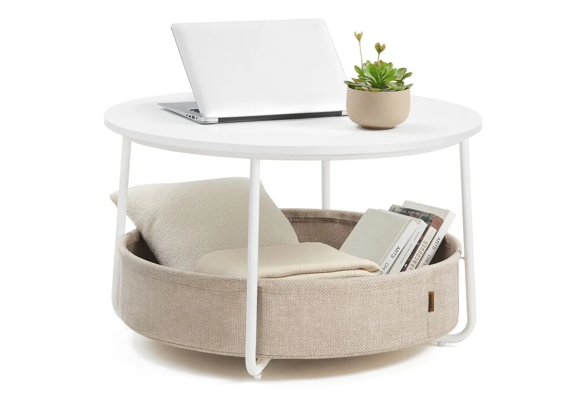 White Round Coffee Table with Basket - Tuckaway