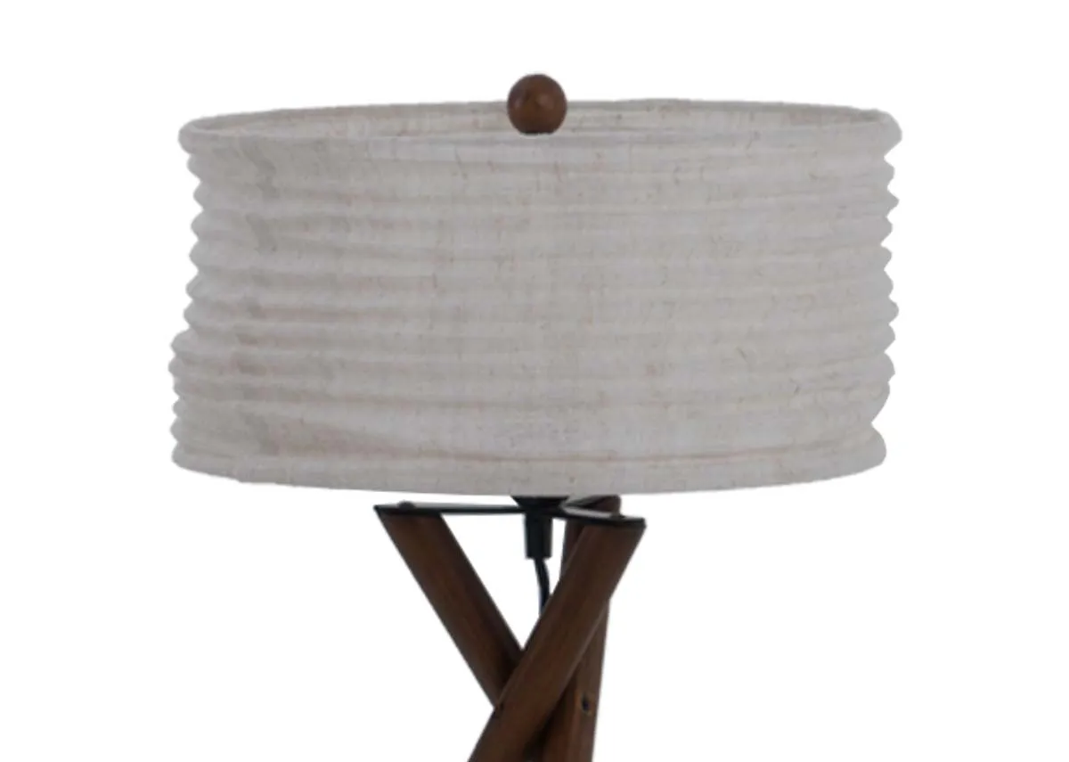 Illuminate your space with the Coolrain Wood Table Lamp, featuring a modern tripod design and a crisp white shade for contemporary elegance.