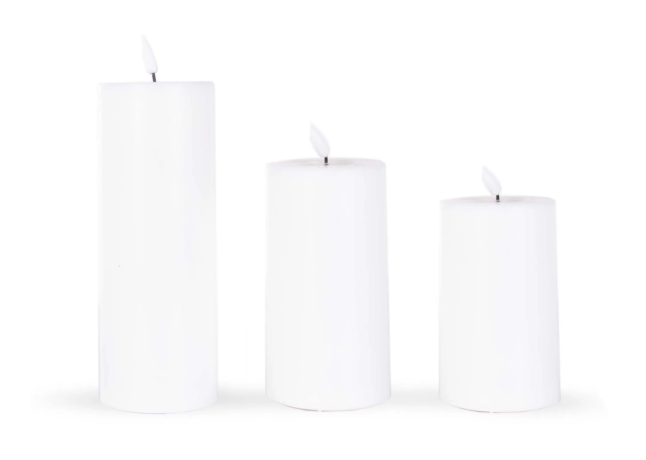 Luxury LED candles with 3D artificial flame, battery operated for up to 400 hours. Available in white, cream & grey with a remote control option.